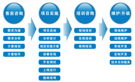 提供專業(yè)咨詢、系統(tǒng)實(shí)施、售后支持等全業(yè)務(wù)環(huán)節(jié)的、以客戶為核心的一站式服務(wù). 作為優(yōu)秀的智慧解決方案提供商、系統(tǒng)集成業(yè)務(wù)服務(wù)商,盛林科技尤其關(guān)注政府及企業(yè)客戶的特色需求和長(zhǎng)遠(yuǎn)規(guī)劃,為客戶提供一流的產(chǎn)品和服務(wù)體驗(yàn),并以"最強(qiáng)實(shí)施團(tuán)隊(duì)、最高級(jí)別要求、最全服務(wù)方式"為標(biāo)準(zhǔn),將服務(wù)貫穿在售前、售中和售后整個(gè)系統(tǒng)建設(shè)過(guò)程,為客戶提供高質(zhì)量的安裝、培訓(xùn)、維護(hù)和技術(shù)支持服務(wù)。 售前咨詢:深入了解分析客戶需求,結(jié)合客戶現(xiàn)狀及特點(diǎn),制定個(gè)性化的信息化解決方案,憑借豐富的行業(yè)知識(shí)與成功經(jīng)驗(yàn),提供深層次、全方位的售前咨詢服務(wù)。 項(xiàng)目實(shí)施:基于前期調(diào)研分析,盛林科技幫助客戶進(jìn)行系統(tǒng)功能選型、功能整合,形成項(xiàng)目實(shí)施方案,提供高質(zhì)量的系統(tǒng)部署、開發(fā)測(cè)試、現(xiàn)場(chǎng)安裝運(yùn)行服務(wù),確保項(xiàng)目順利驗(yàn)收。 培訓(xùn)咨詢:提供系統(tǒng)操作指導(dǎo)及各種培訓(xùn)服務(wù),如現(xiàn)場(chǎng)培訓(xùn)、在線培訓(xùn)、視頻培訓(xùn)等,從售前咨詢、項(xiàng)目實(shí)施、培訓(xùn)咨詢到維護(hù)升級(jí),將咨詢服務(wù)貫穿于項(xiàng)目始終。 維護(hù)/升級(jí):緊密貼合用戶單位發(fā)展戰(zhàn)略,不斷優(yōu)化、完善項(xiàng)目信息化體系建設(shè)工作,提供現(xiàn)場(chǎng)維護(hù)、遠(yuǎn)程維護(hù)、系統(tǒng)升級(jí)及其他技術(shù)支持服務(wù),并可根據(jù)客戶需求提供專業(yè)的二次開發(fā)服務(wù),確�?蛻舻南到y(tǒng)正常、穩(wěn)定運(yùn)行。 |
