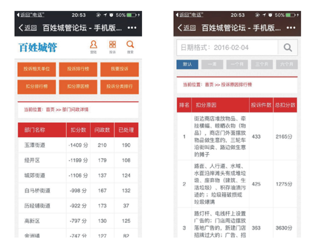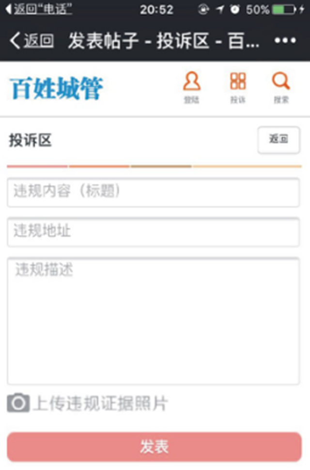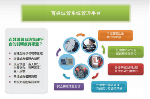 1.目的: “百姓城管投訴考核系統(tǒng)”是為提高縣域容貌和民眾滿意度,順應(yīng)“互聯(lián)網(wǎng)+”時代城市治理的發(fā)展和需求,突破城市治理內(nèi)循環(huán)而打造,以”實(shí)現(xiàn)人民城市人民管,人人都是城管員“為目標(biāo),是真正的“百姓城管”。 2.設(shè)計思路 3.系統(tǒng)特點(diǎn): 4.處理流程: 市民投訴階段:市民發(fā)現(xiàn)城市亂象,通過手機(jī)發(fā)送圖文信息進(jìn)行投訴,數(shù)據(jù)即時上傳至處理中心。 1)投訴審核階段:處理中心工作人員查閱投訴,并進(jìn)行真實(shí)性和準(zhǔn)確性審核。 2)任務(wù)派遣階段:處理中心工作人員將有效投訴派遣至相應(yīng)責(zé)任單位。 3)任務(wù)處理及反饋:責(zé)任單位收到派遺后,派相關(guān)人員迅速處理,并將處理后的結(jié)果反饋至處理中心。 4)處理完結(jié)審核階段:處理中心對責(zé)任單位反饋來的情況進(jìn)行核實(shí),不屬于有效完成的,重新派遣至責(zé)任單位。 5)案件結(jié)案階段:處理中心對責(zé)任單位反饋來的情況進(jìn)行核實(shí),屬有效完成的,作辦結(jié)處理。 5.功能: 1)市民群眾投訴模塊:市民群眾可以使用任意移動端登陸微信,進(jìn)入百姓城管公眾平臺即可實(shí)現(xiàn)對城管亂象進(jìn)行在線投訴(以圖片、文字形式即時上傳:扣分原因,地 址有可選項,便于群眾使用。 2)紅包獎勵模塊:給予關(guān)注百姓城管平臺的市民群眾一定數(shù)額的紅包獎勵;給予參與投訴的市民群眾每個有效投訴一定數(shù)額的紅包獎勵。 3)公示功能:將后臺處理過的扣分情況和其它數(shù)據(jù)即時公示到微信平臺并聯(lián)動更新。 6. 領(lǐng)導(dǎo)關(guān)注: 寧鄉(xiāng)縣“百姓城管投訴考核系統(tǒng)”在全國屬于首創(chuàng),平臺創(chuàng)立以來,群眾反響熱烈,縣委書記,縣長,分管副縣長多次親臨百姓城管處中心,進(jìn)行調(diào)研和指導(dǎo),并獲高度 認(rèn)可。 寧鄉(xiāng)縣縣委書記周輝同志親臨百姓城管處中心,進(jìn)行調(diào)研和指導(dǎo)工作。 7.成功案例: 寧鄉(xiāng)縣城管局 寧遠(yuǎn)縣城管局 |